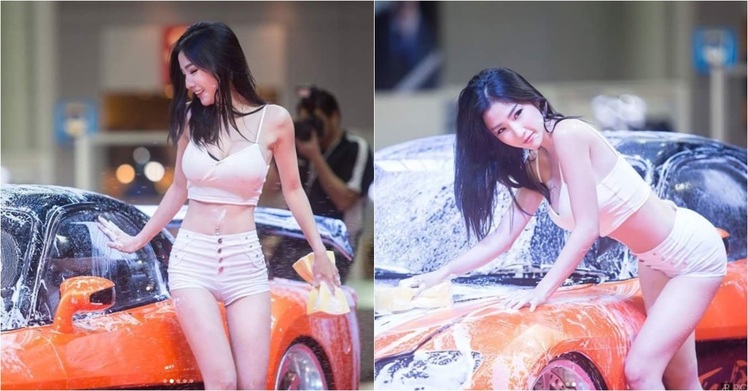 火辣車模放大絕!竟搓著泡泡用身體洗車